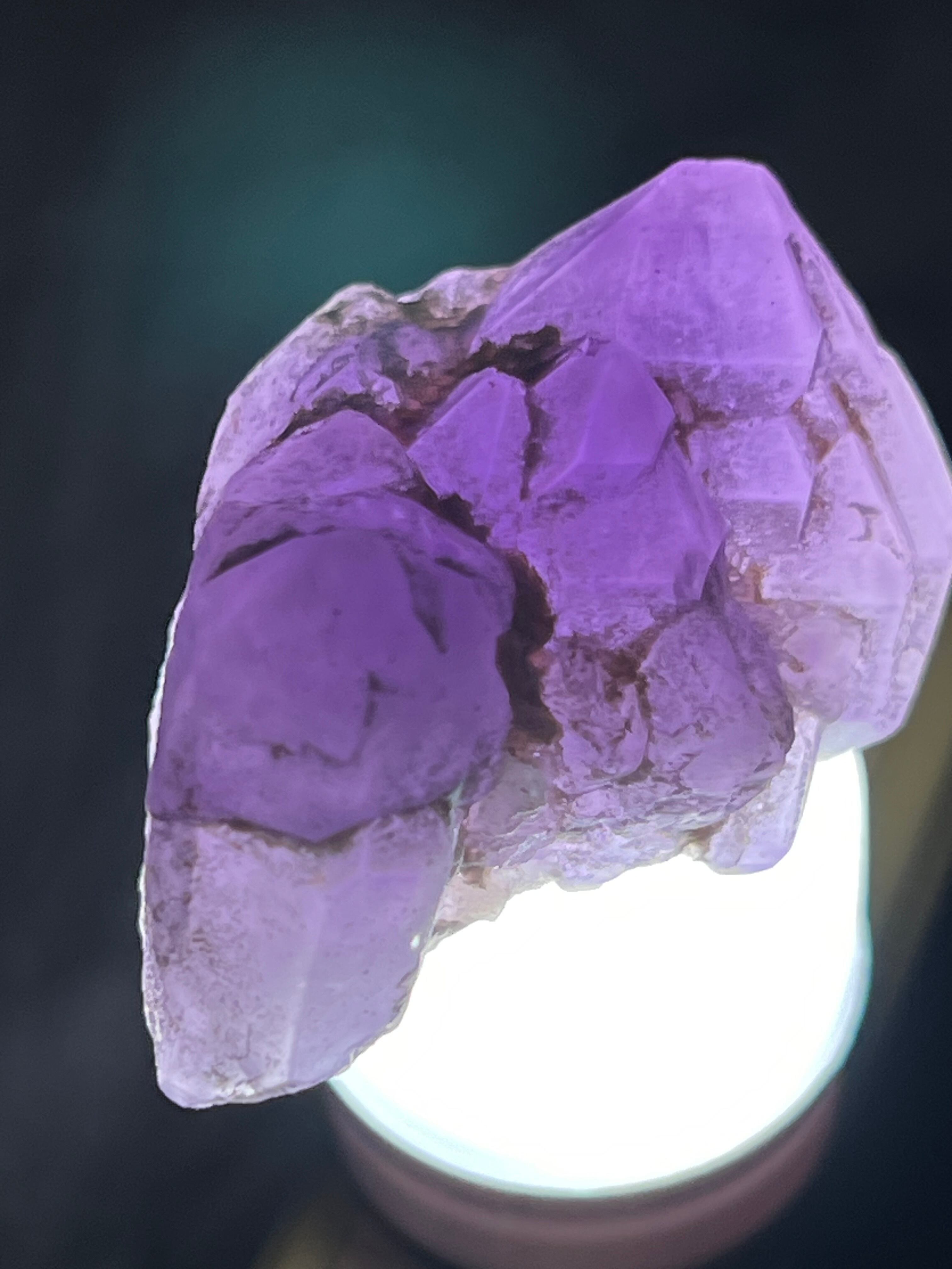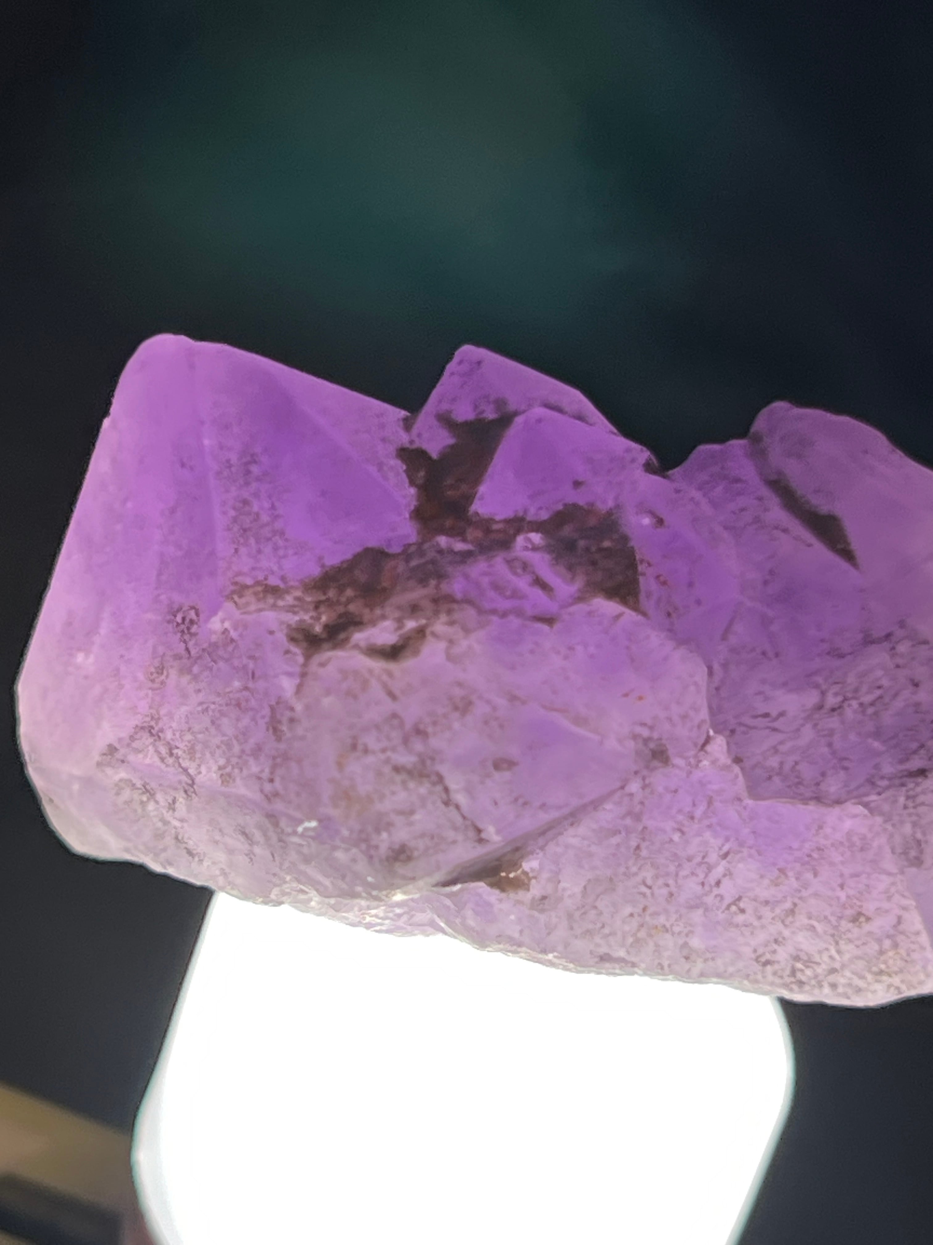 アメジストは日光、紫外線を浴び過ぎると褪色(ゆっくり色が抜けていく)していくので、LED照明で